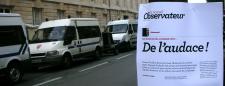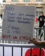 Stand, distribution de tracts, les troupes au départ un peu clairsemées se sont répandues sur la Place du Palais Bourbon, remettant de la lecture à M. Guaino, par exemple, sous l'oeil des caméras. Jusqu'à ce que les forces de l'ordre, très fournies, elles, leur enjoignent de se cantonner au périmètre des barrières de la Place Edouard Herriot, sous les arbres.